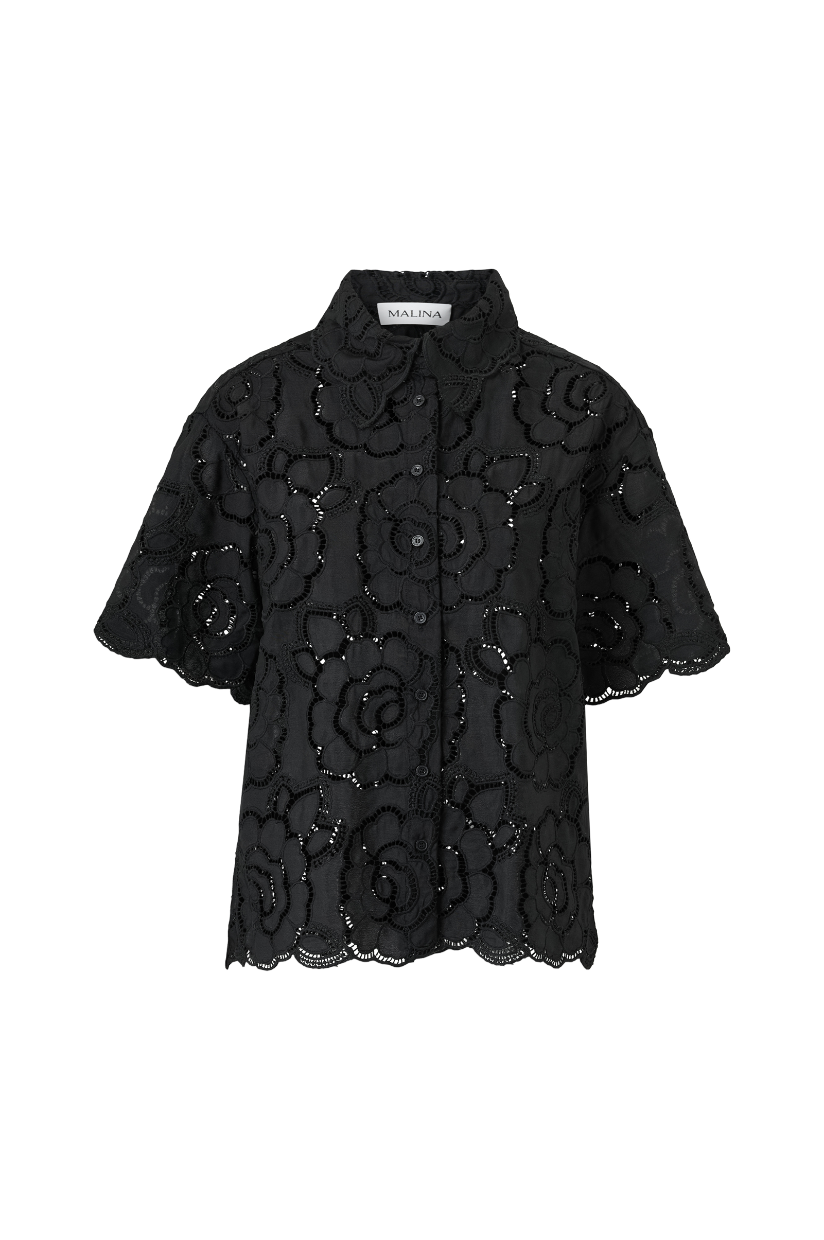 • Kurzärmliges, transparentes Hemd• Lochstickereien rundum