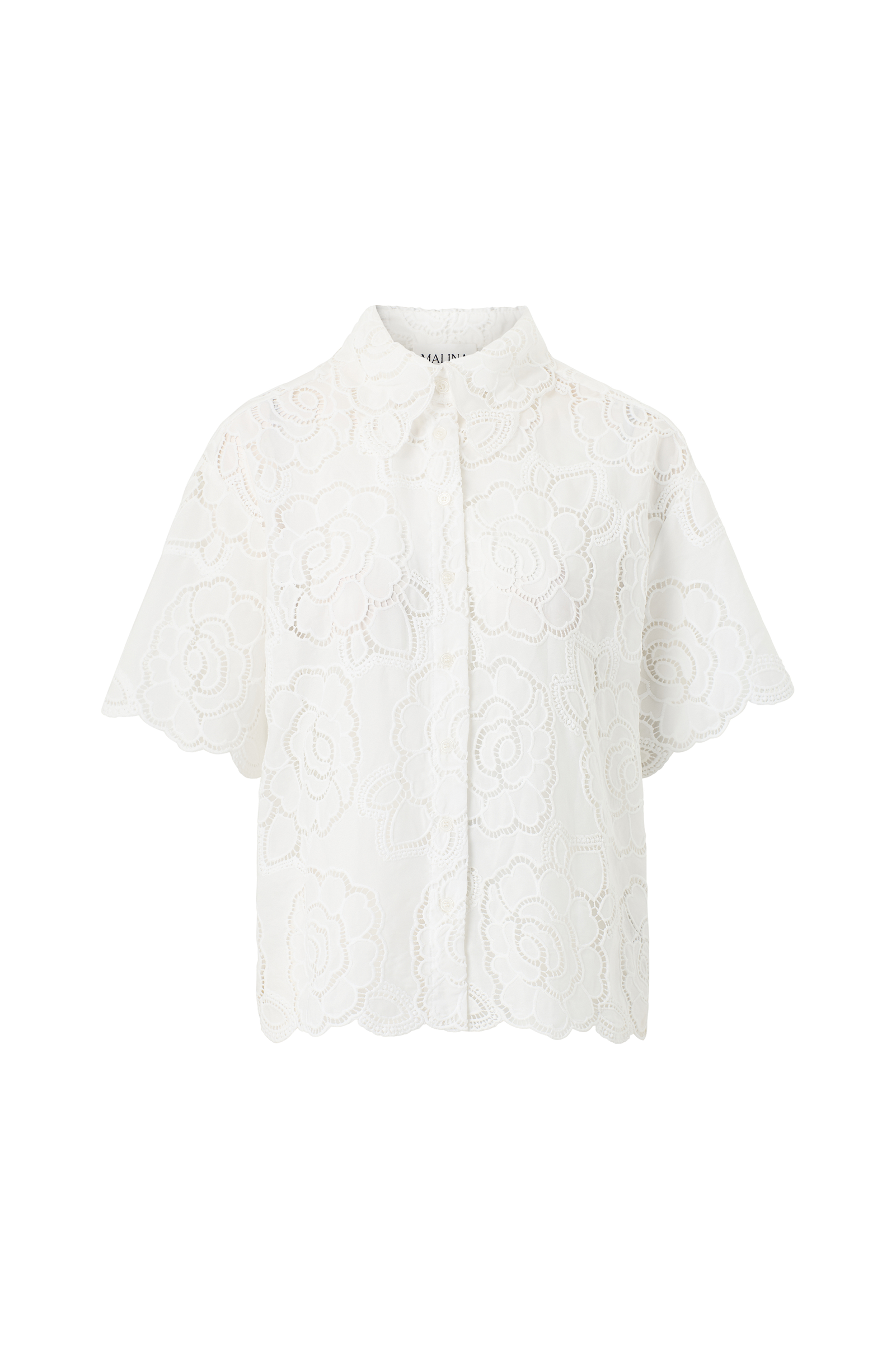 • Kurzärmliges, transparentes Hemd• Lochstickereien rundum