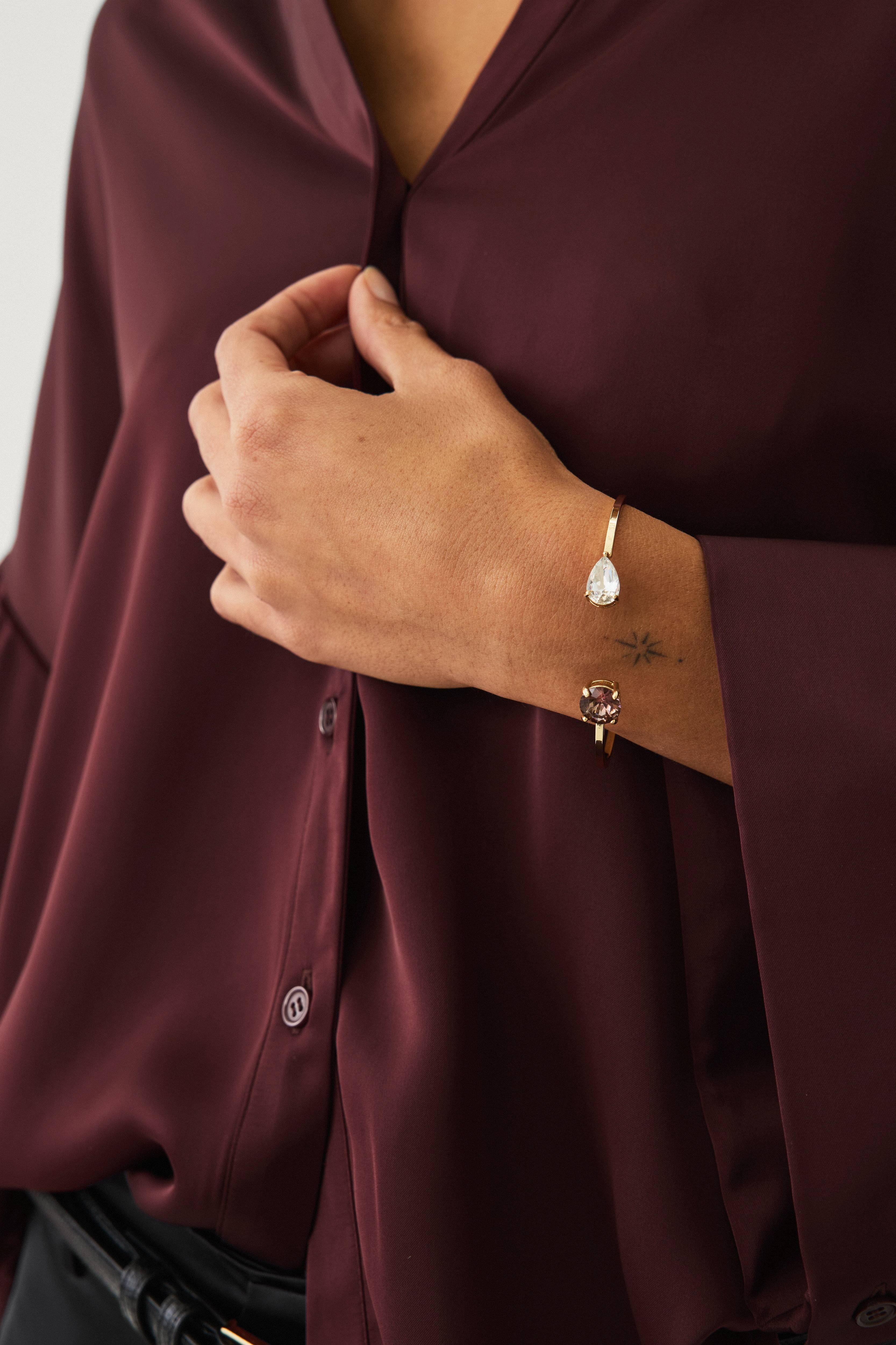 • Armband aus Messing mit zwei Steinen aus Zirkonia• Ein tropfenförmiger Stein• Ein quadratischer Stein• Je nach Lichteinfall können die Steine eine andere Farbe annehmen.