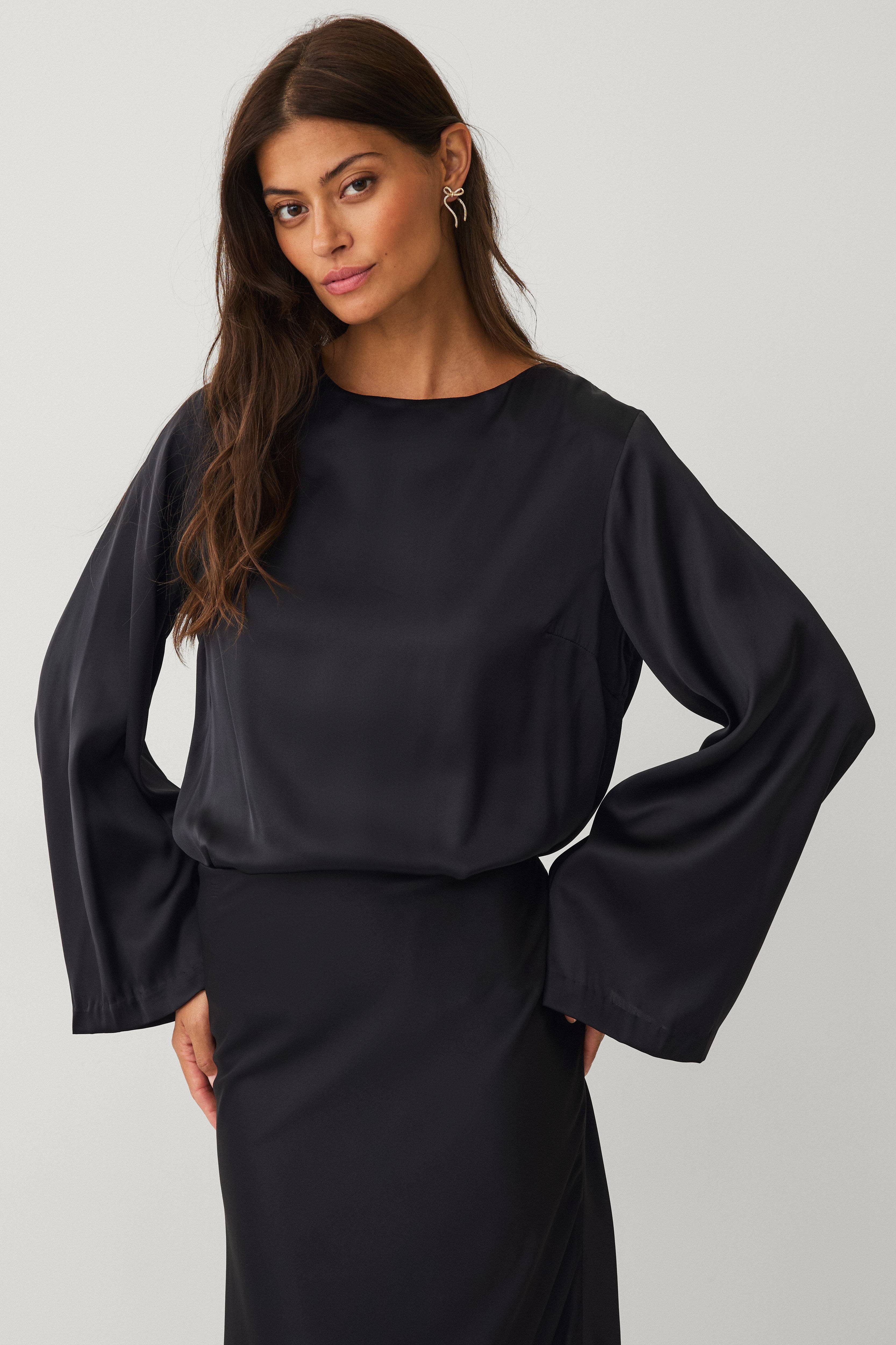 • Bluse aus Satin• Rundhalsausschnitt mit Öffnung und Knopf hinten• Breite Ärmel• Länge: 76 cm in Größe 46/48