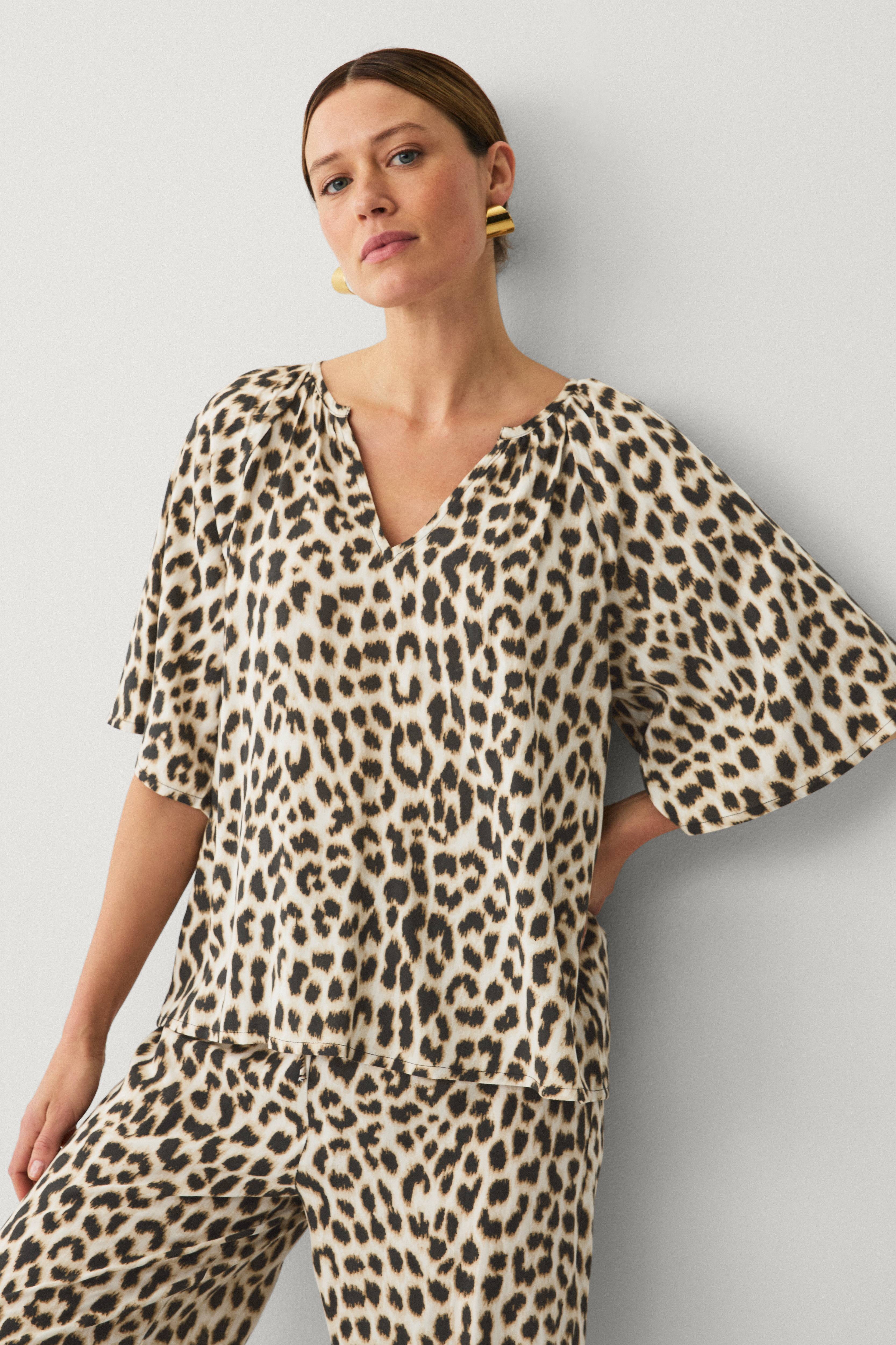 • Bluse erhältlich in Schwarz oder mit Leopardenmuster