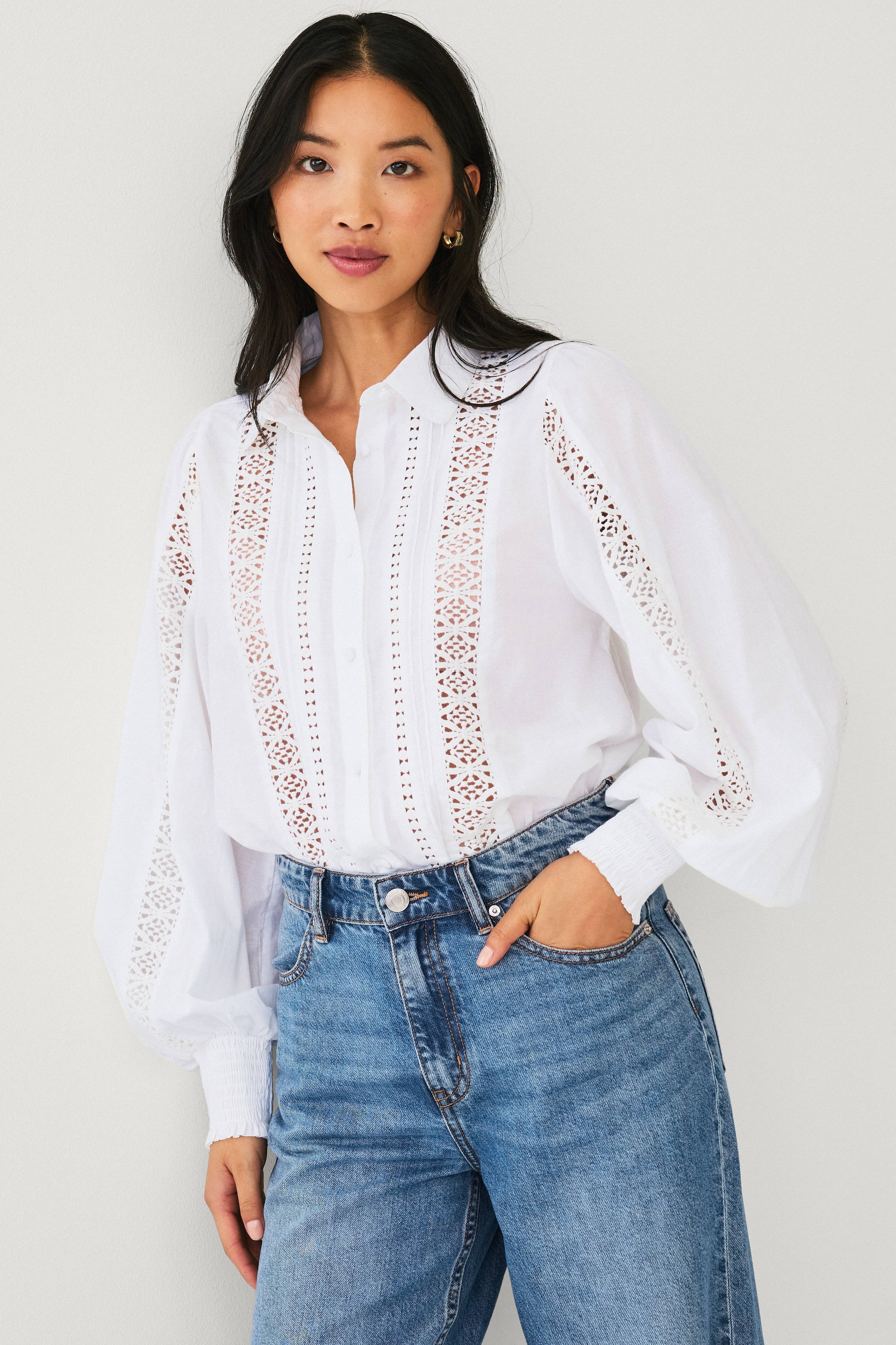 • Bluse aus Baumwolle mit überzogenen Knöpfen vorne• Gestickte Spitze vorne• Lange Puffärmel mit Smok an den Armenden• Schlitz unten an den Seiten• Länge: 67 cm in Größe S