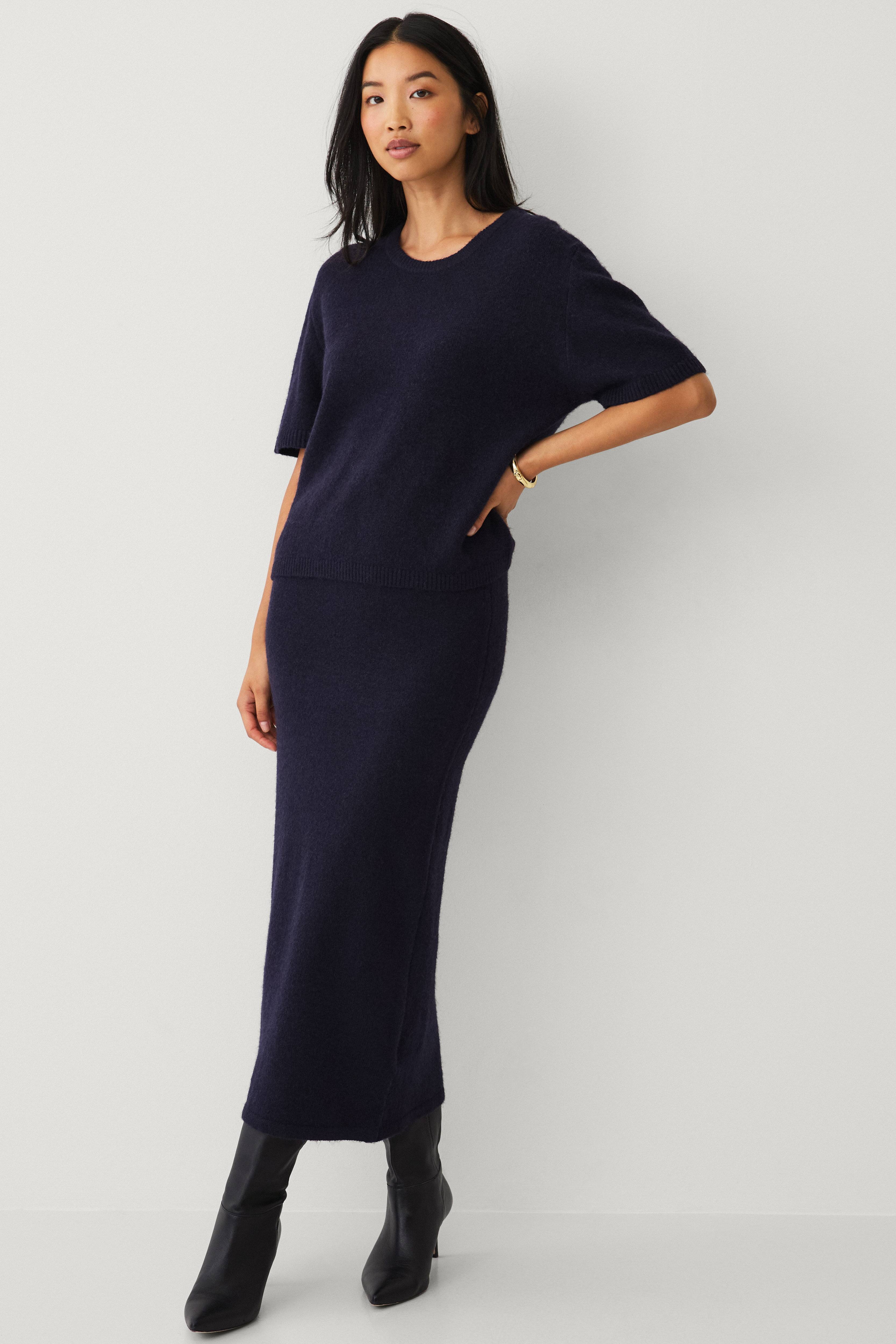 Schöner gestrickter Rock, der nicht juckt, in einer herrlichen marineblau Farbe