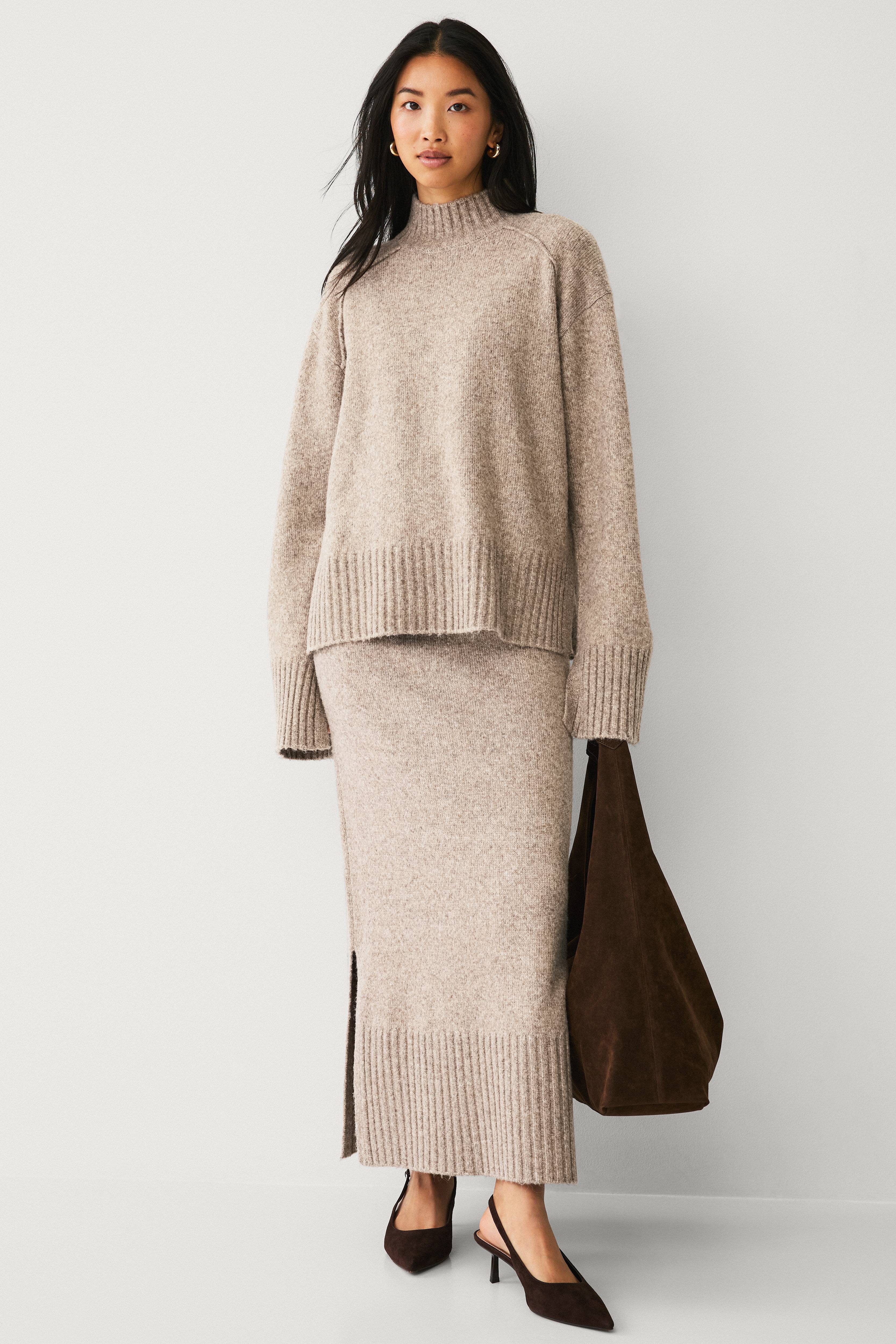 • Langer, gestrickter Rock• Gerippte Taille mit Gummiband• Breiter Rippenstrick am unteren Saum• Schlitze unten an den Seiten• Länge: 92 cm in Größe S