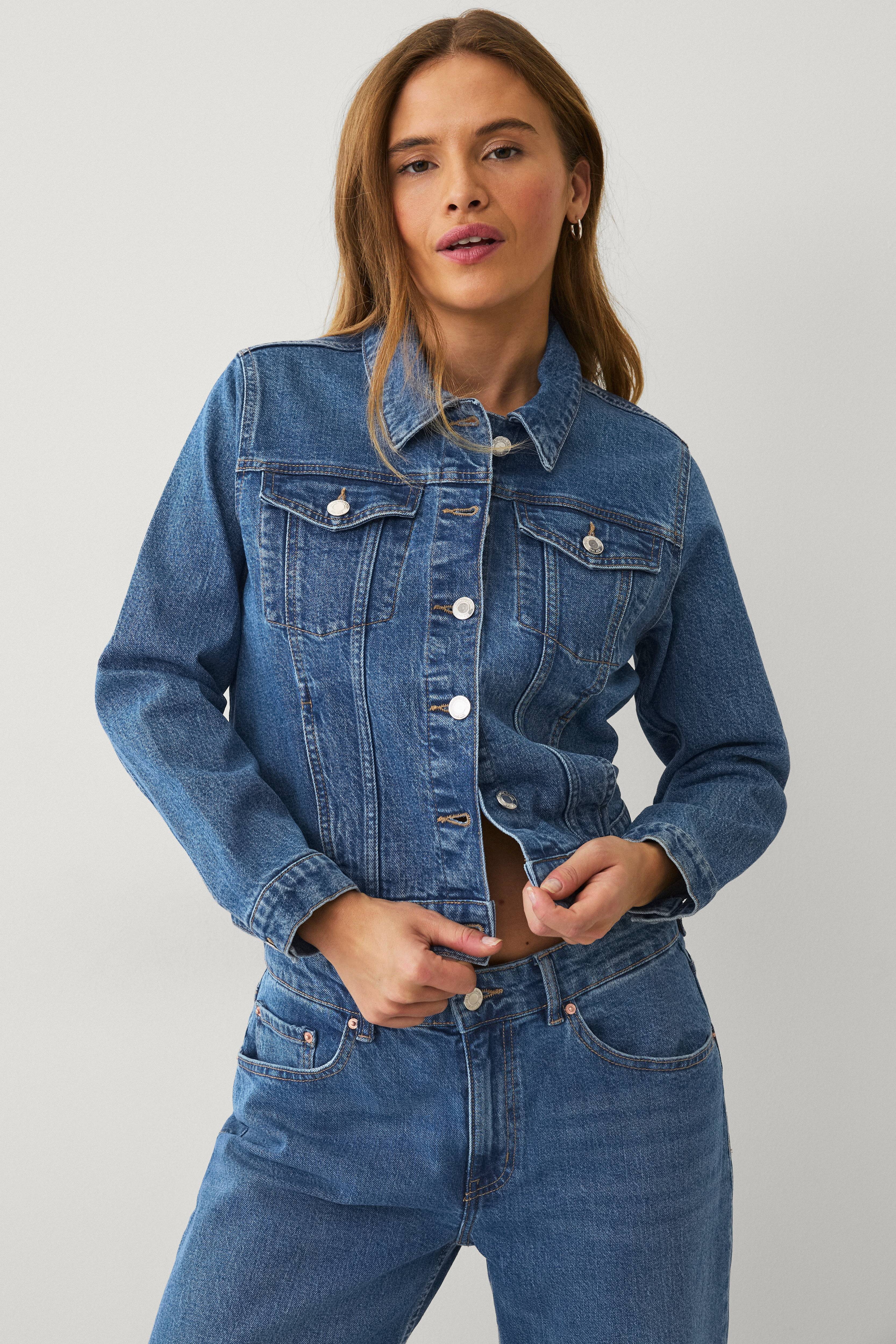 • Jeansjacke mit Hemdkragen und langen, geraden Armen
