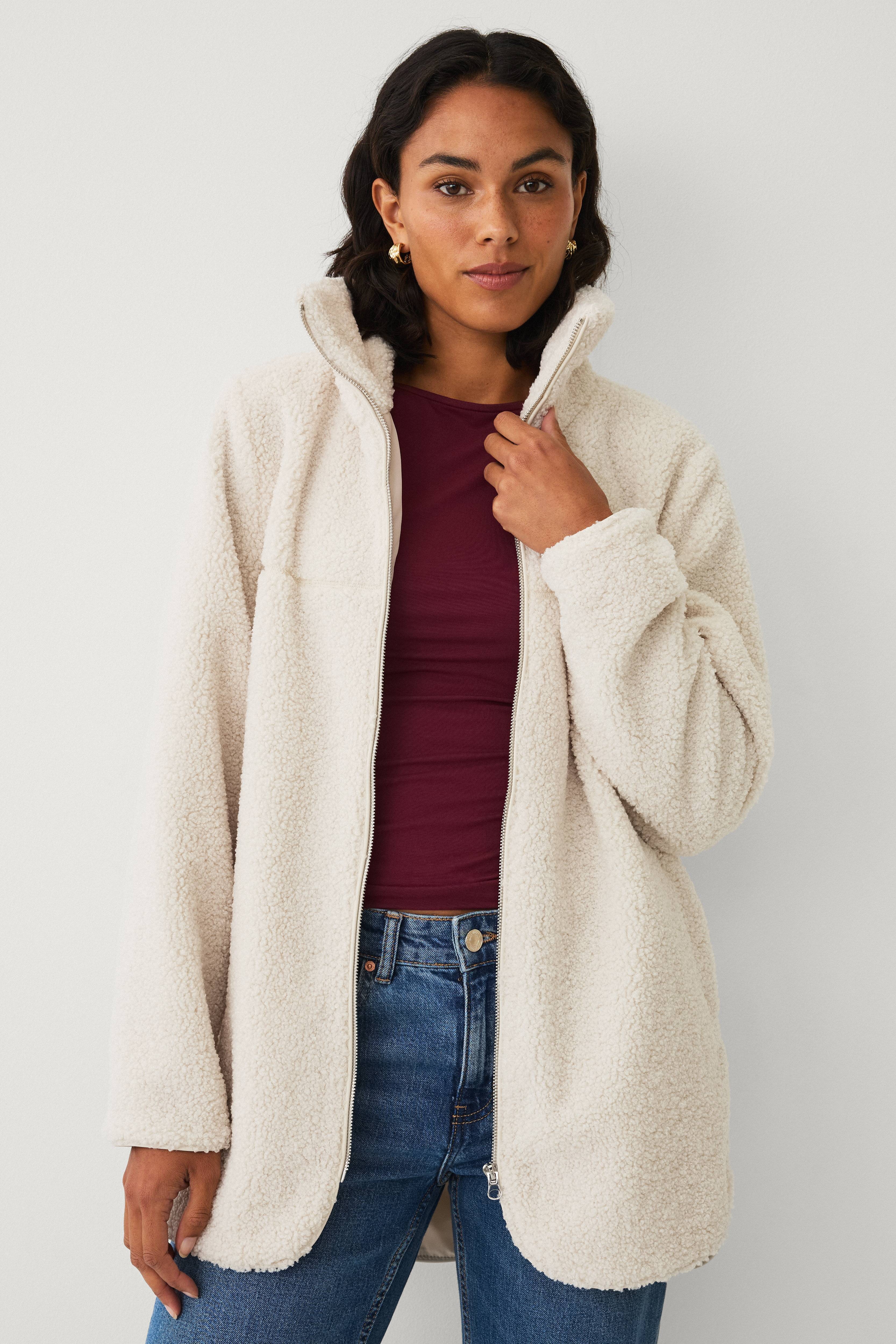 • Jacke aus Stapel mit gewebtem Innenfutter• Oversize-Passform• Stehkragen• Reißverschluss vorne• Seitentaschen mit innerem Fleece• Rückseite mit langwierigem Saum und Schlitz in den Seiten• Länge: 84 cm in Größe S