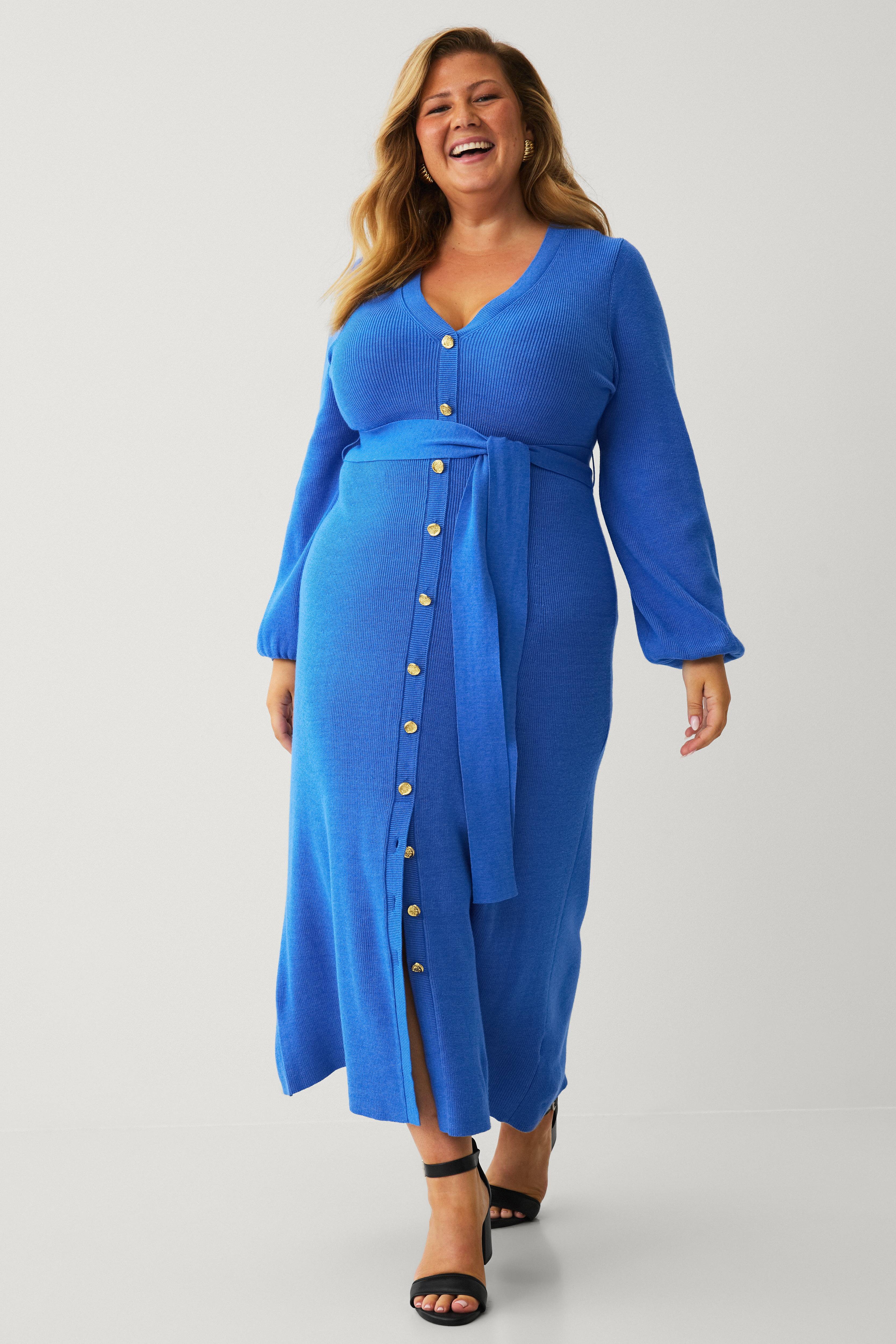 • Langes Kleid mit einem Feinstrick und dekorativen, goldfarbenen Knöpfen vorne • V-förmiger Nacken mit Rippstrick • Lange Ballonärmel mit Rippbündchenen an den Ärmelenden • Rippenstrick in der Taille mit abnehmbarem Gürtel zum Selberbinden • Länge: 122 cm in Größe L • Dieses Produkt ist Teil der exklusiven Ellos-Kollektion in Zusammenarbeit mit Linda-Marie Assergård.