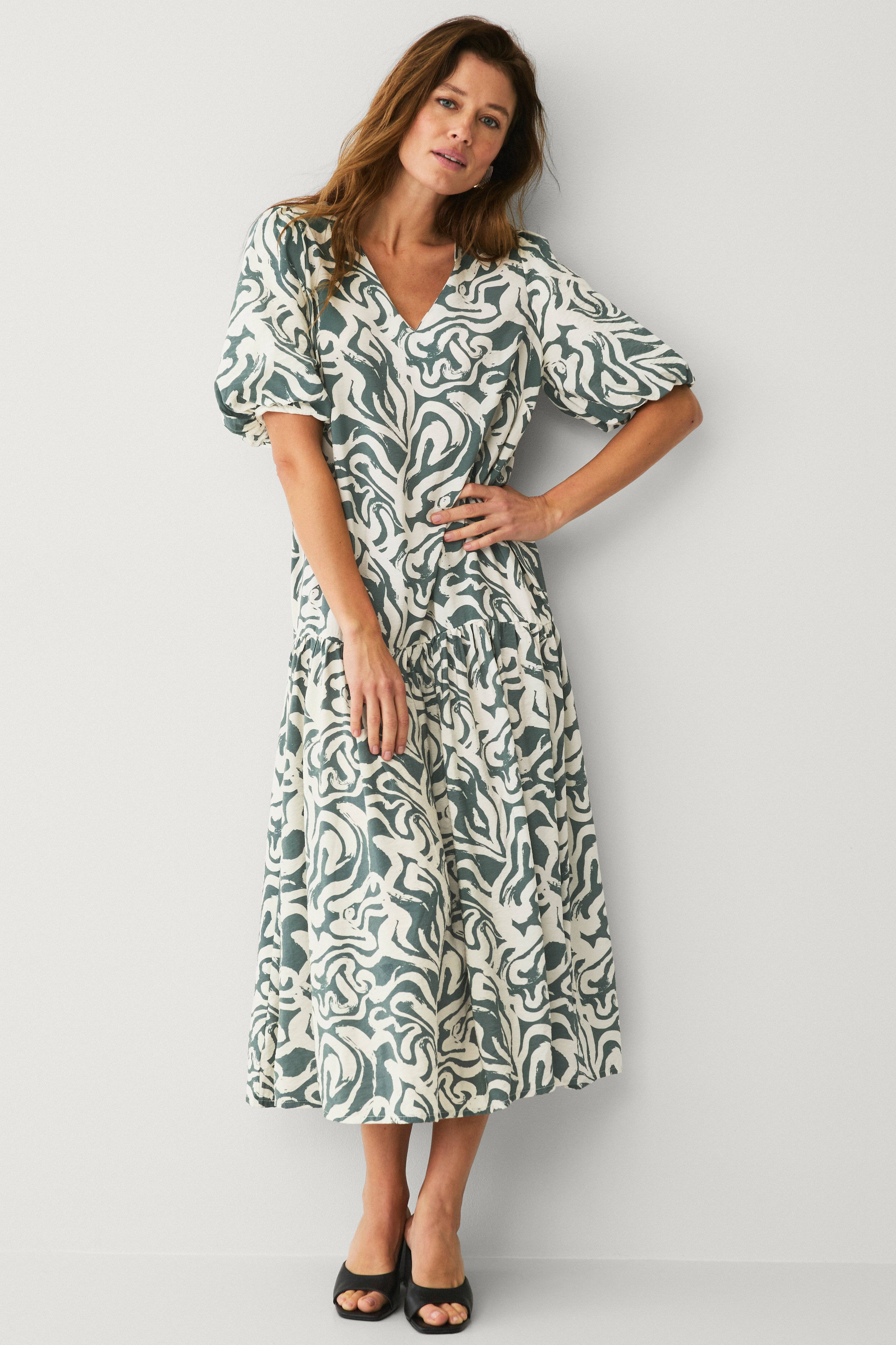 Schön für Feste und den Alltag! Die Größe war gut... und der Stoff... ist schön... die Ärmel sind etwas puffig... ich brauchte ein Kleid für eine Hochzeit. Dieses passt dort sehr gut hin!