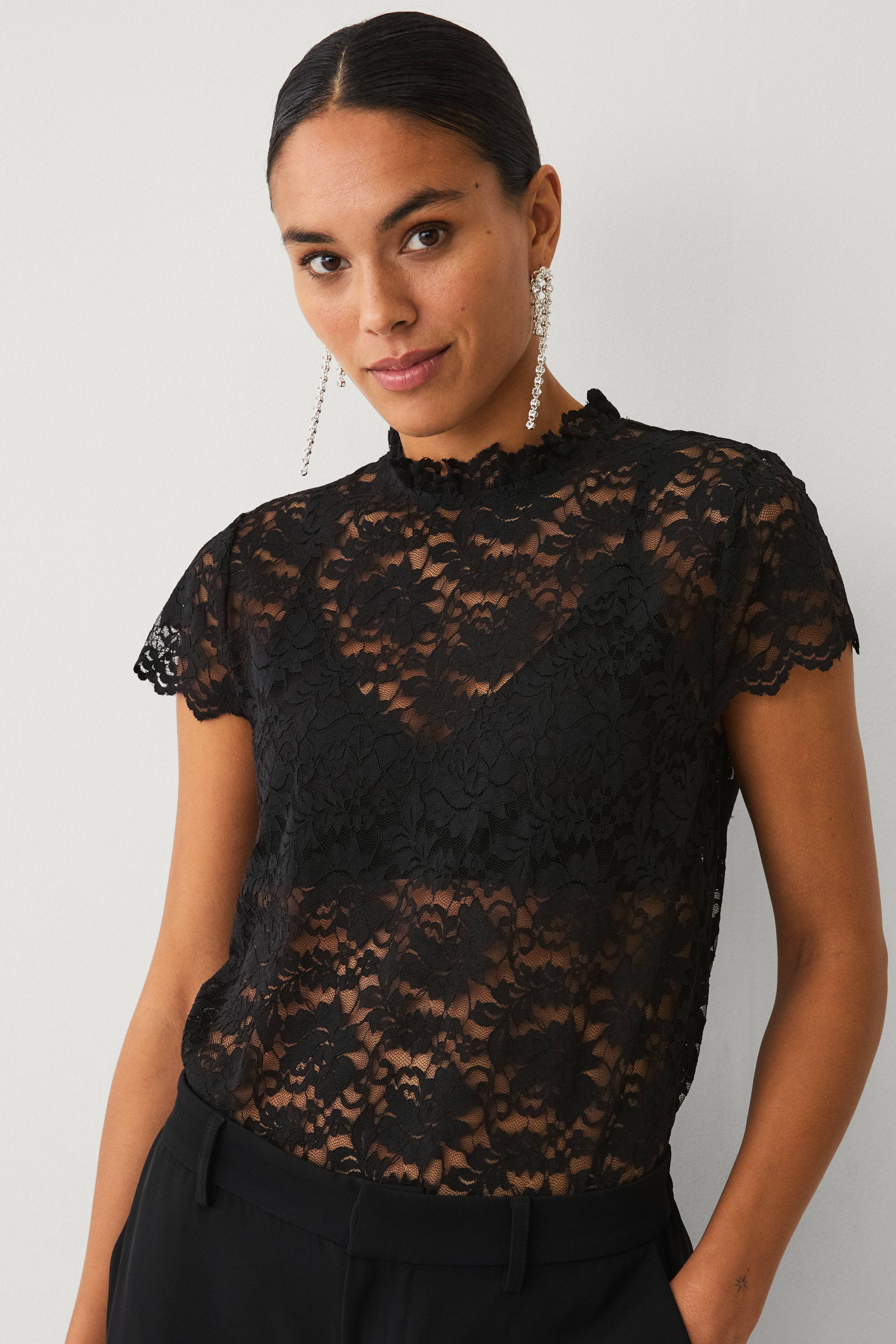 • Elastisches, transparentes Oberteil aus Spitze