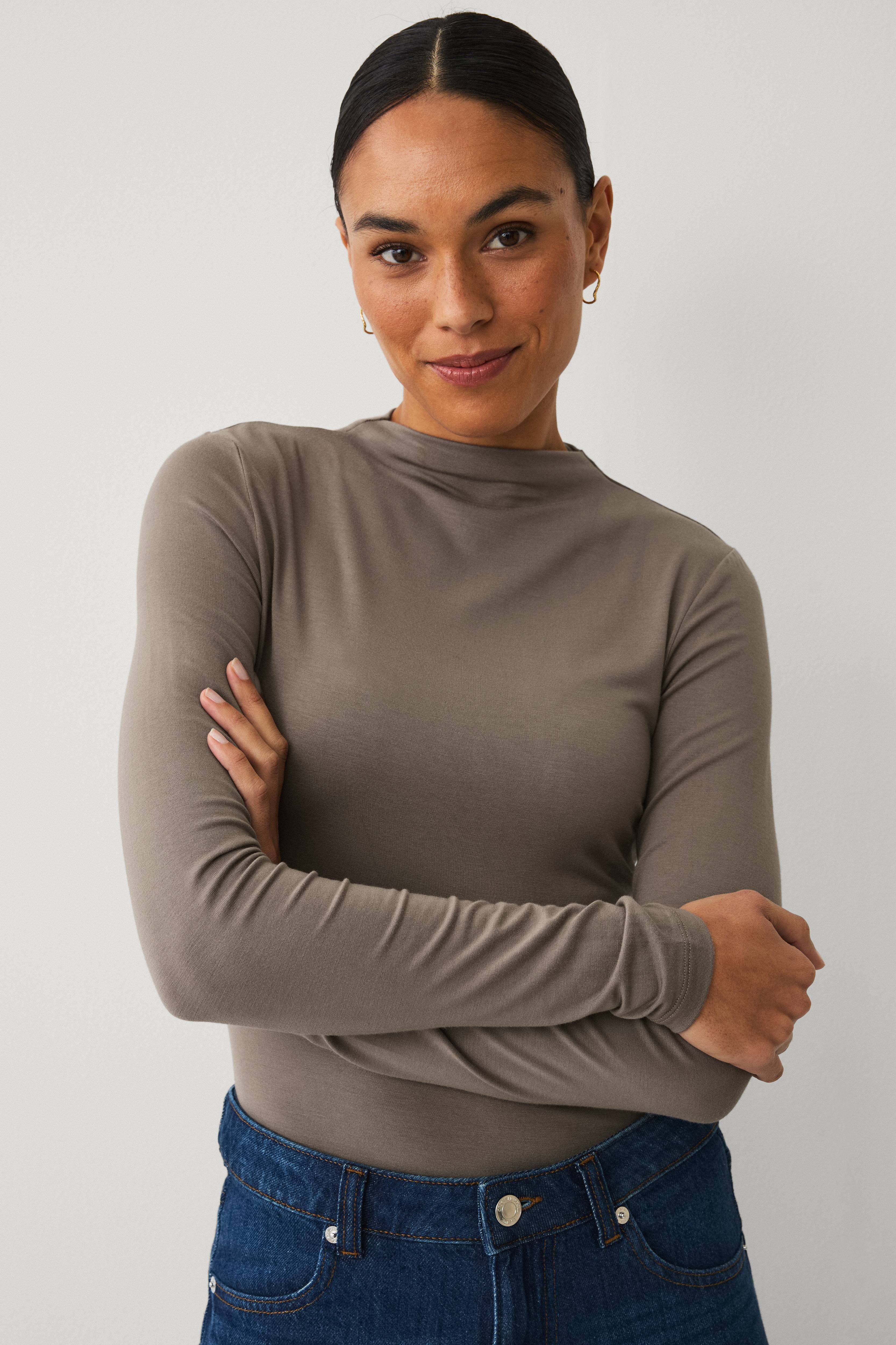 • Oberteil aus weichem Viskose-Jersey• Lange Ärmel• Hoher Ausschnitt• Länge: 60 cm in Größe 34/36