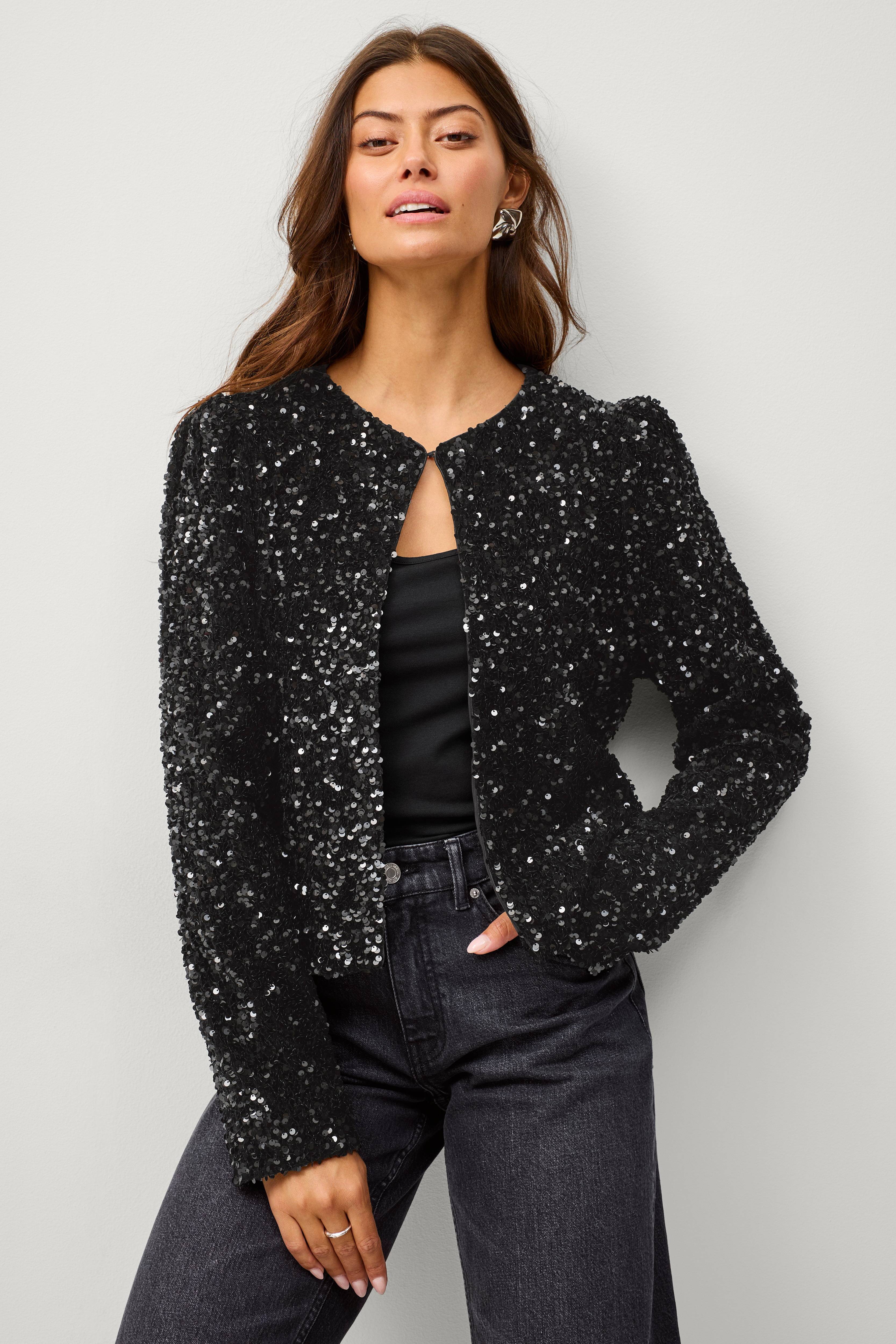 • Große Größen• Kurzes Modell mit gestickten Pailletten komplett• Rundhalsausschnitt• Öffnung vorne mit einem Verschluss oben• Langer Ballonärmel• Gefüttert• Länge: 52 cm in Größe S