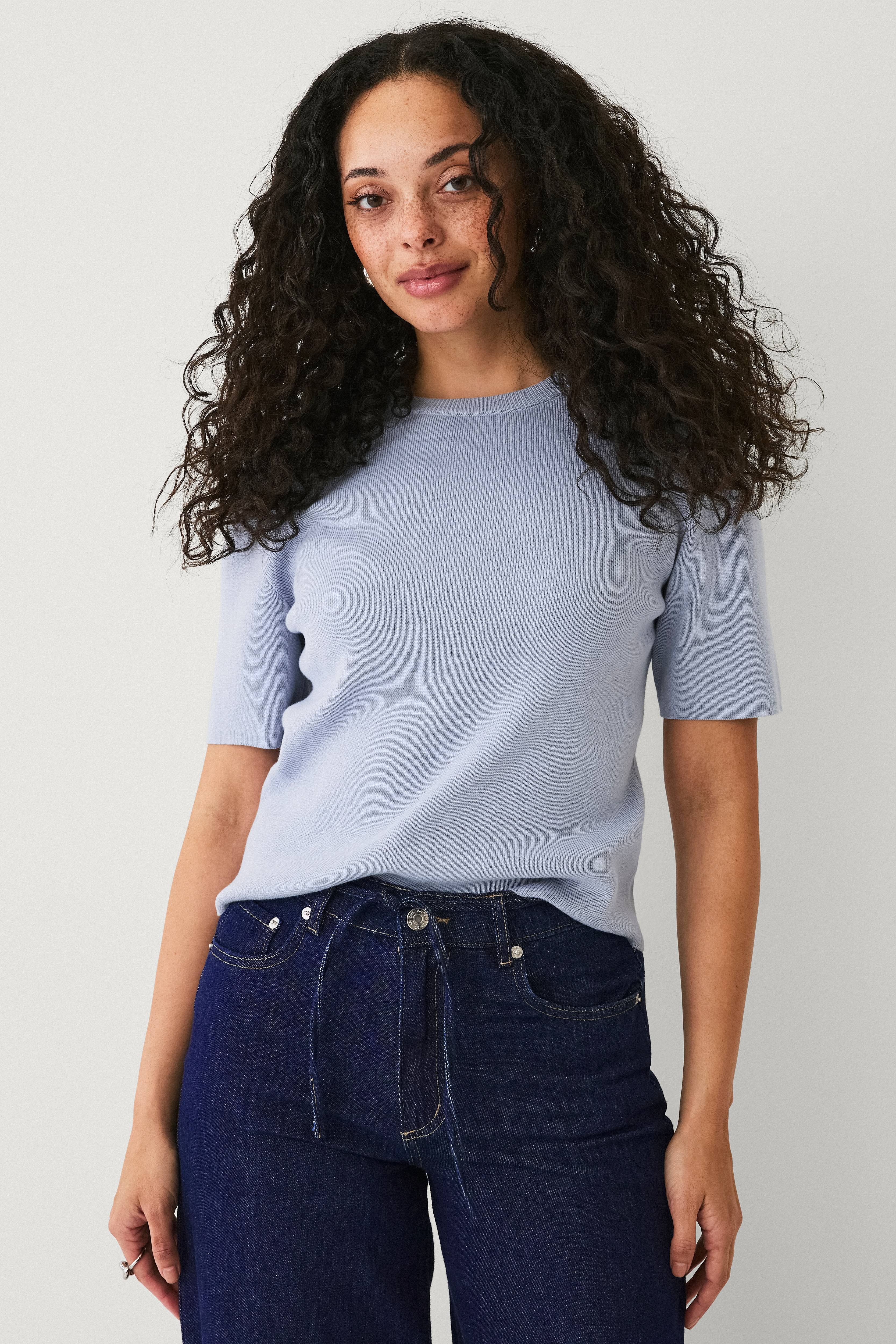 • Gestrickter Pullover aus Baumwollmischung• Rundhalsausschnitt• Kurzer Ärmel• Länge: 56 cm in Größe S