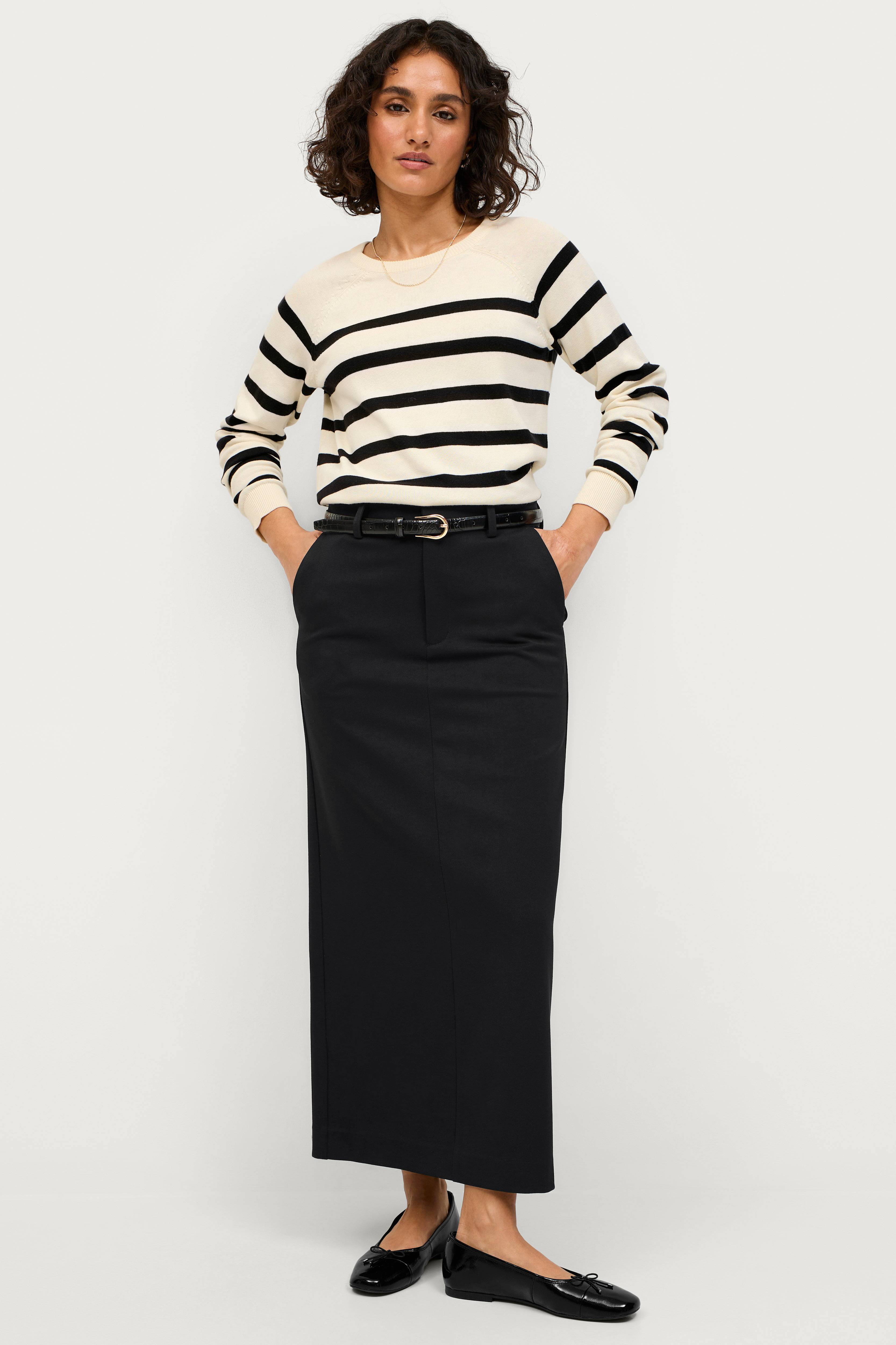 • Stylischer Rock• Taschen in den Seiten• Falsche Taschen hinten• Reißverschluss• Hakenverschluss• Schlitz hinten• Länge: 92 cm in Größe 36