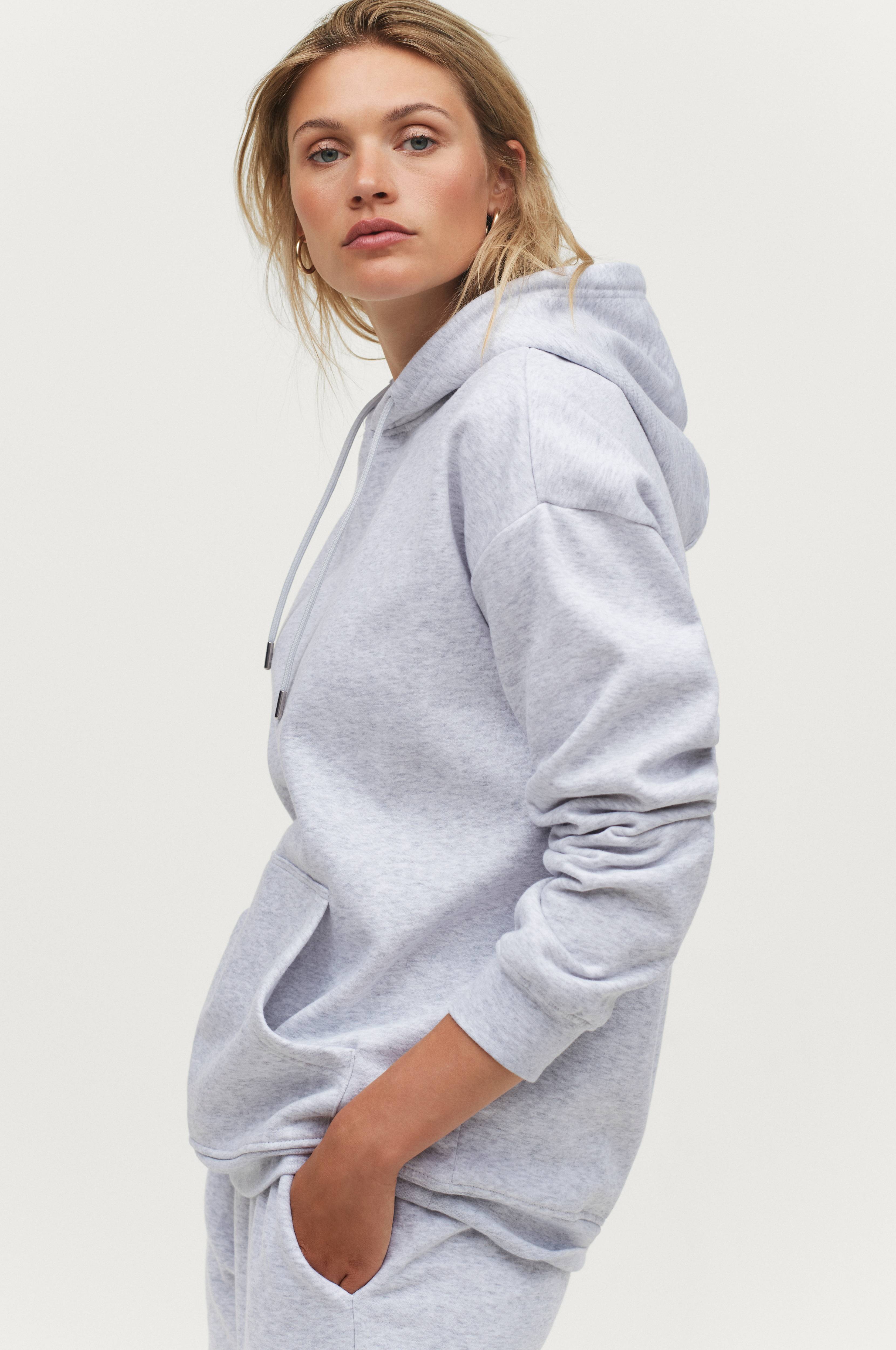 • Lässiges Modell • Kapuze mit Kordelzug • Beuteltasche • Rippbündchen an den Ärmelenden und unten • Weich gebürstet Innenseite • Länge: 69 cm in Größe 34/36