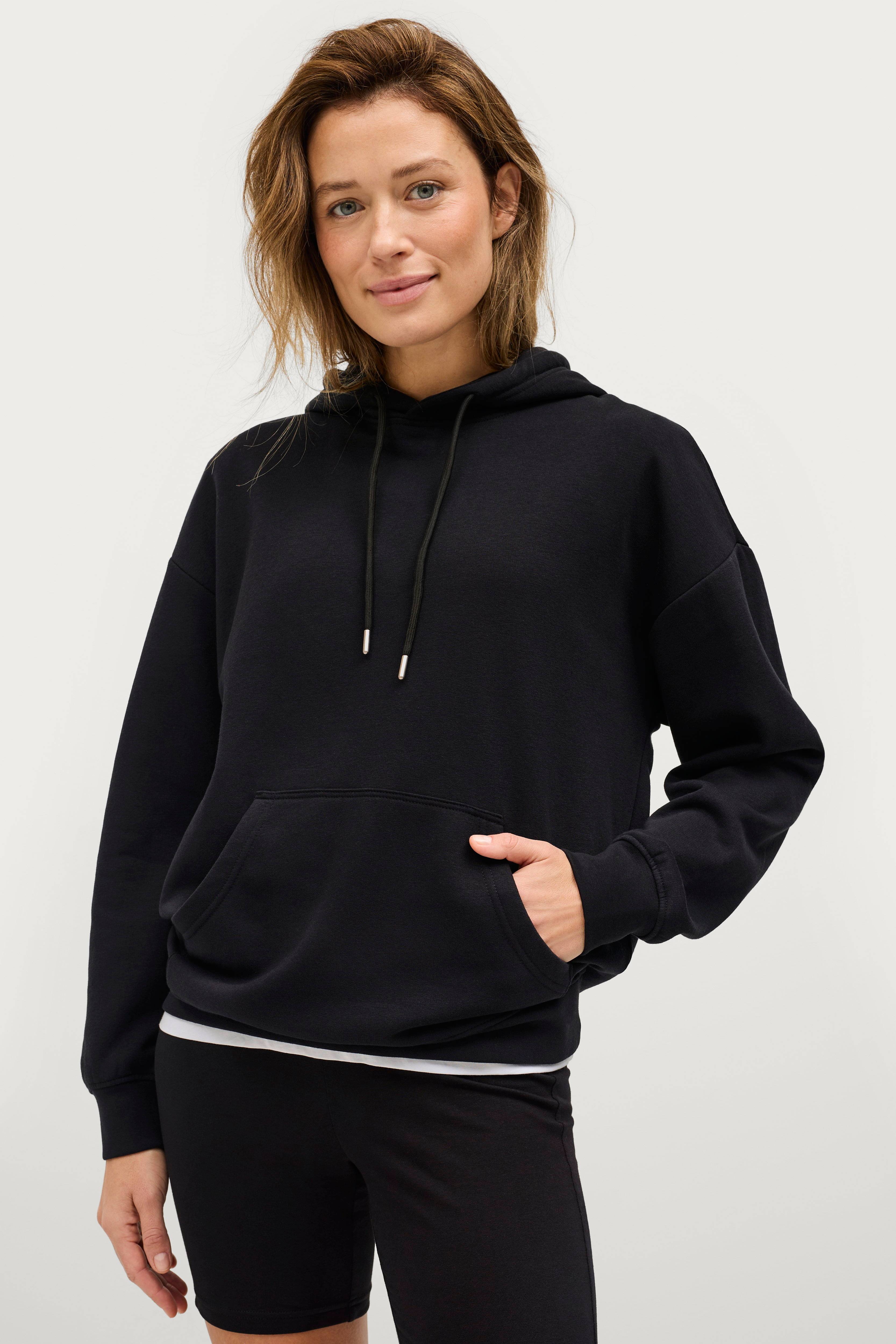 • Lässiges Modell• Kapuze mit Kordelzug• Beuteltasche• Gerippte Manschette an den Manschetten und unten• Weich gebürstet Innenseite• Länge: 69 cm in Größe 34/36