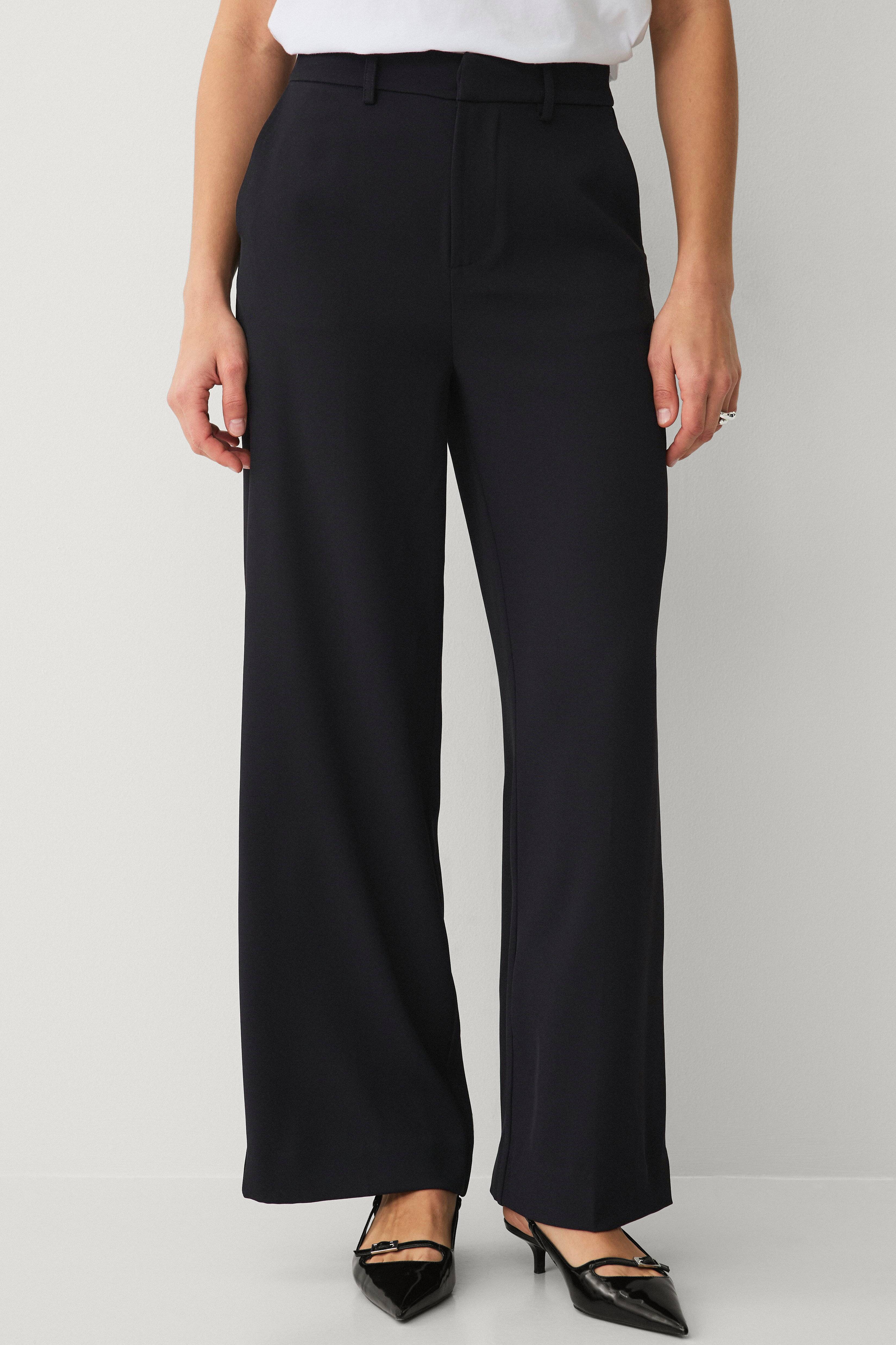• Modell aus weichem Material mit breiten Hosenbeinen• Verschluss mit Reißverschluss, Haken und Knopf vorne• Versteckte Taschen an den Seiten• Gummiband an der hinteren Taille