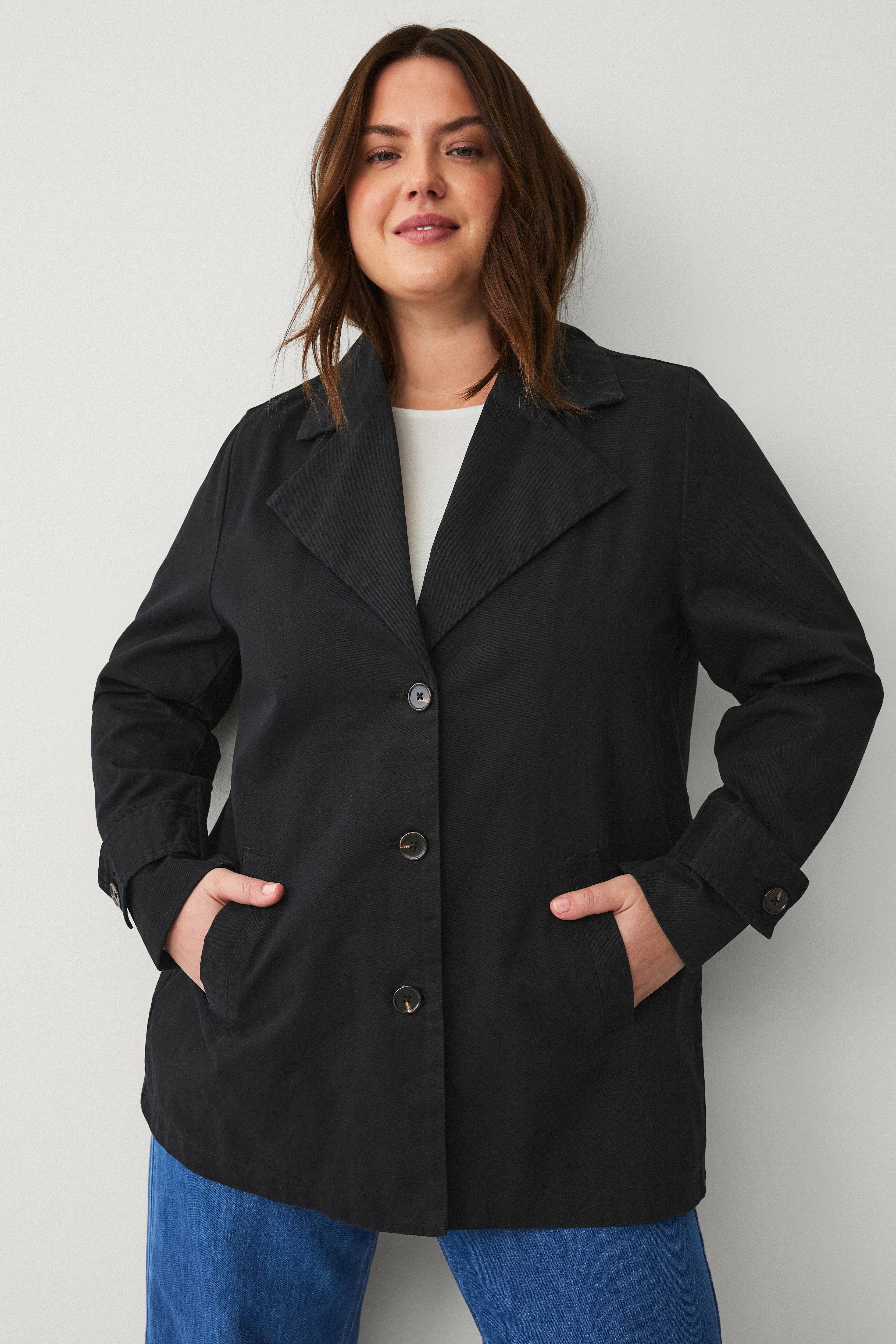 Groß und unförmig. Steht am Rücken heraus, wenn man sie vorne zuknöpft. Die Stoffqualität war gut. Aber das Modell sitzt nicht schön. Man sieht mindestens 10 Kilo schwerer aus.