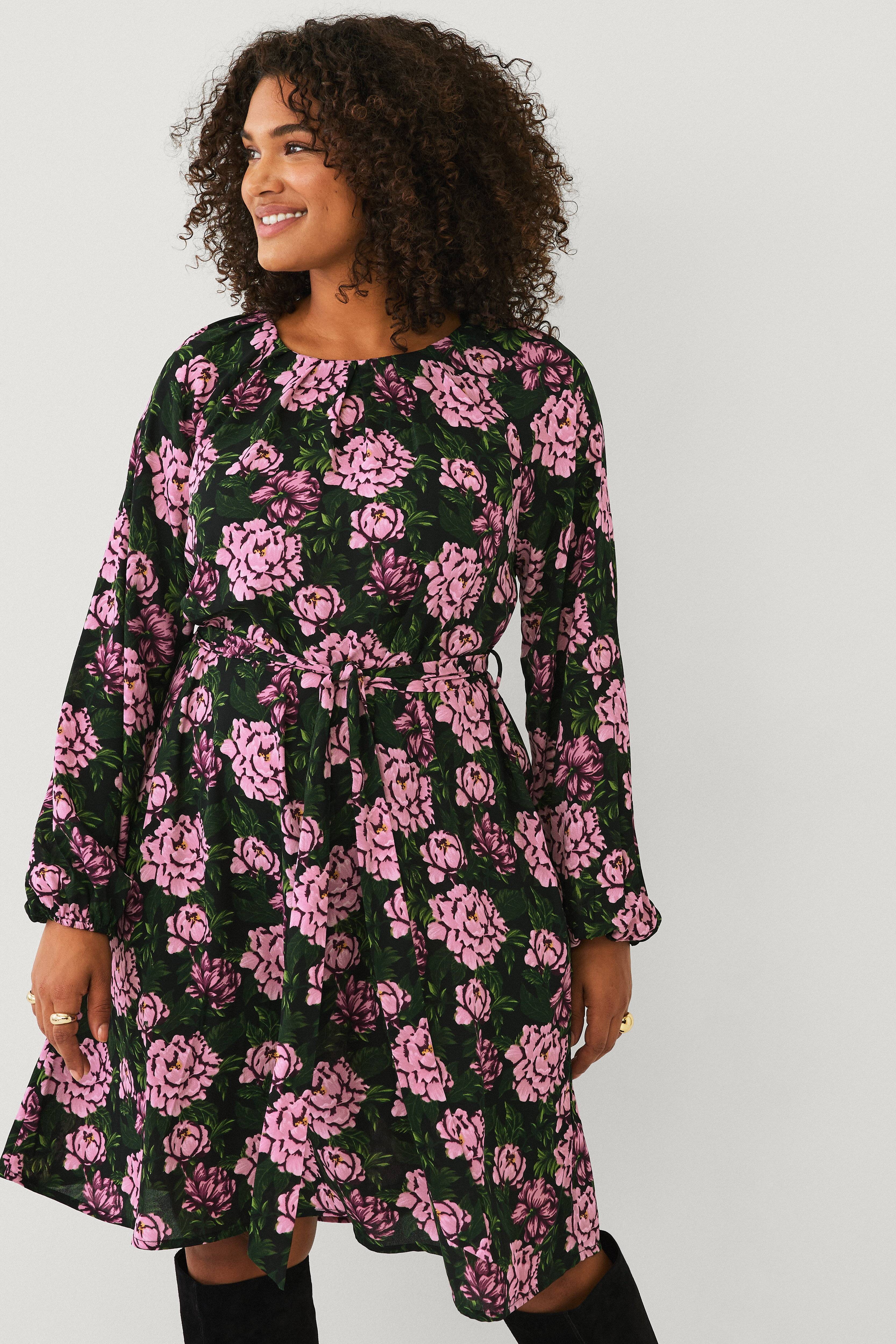 Angenehm zu tragen, mit dem Gürtel kann man die Taille betonen, sodass es nicht sackförmig ist. Ein schönes, feminines Kleid. Hübsche, leicht puffige Ärmel.