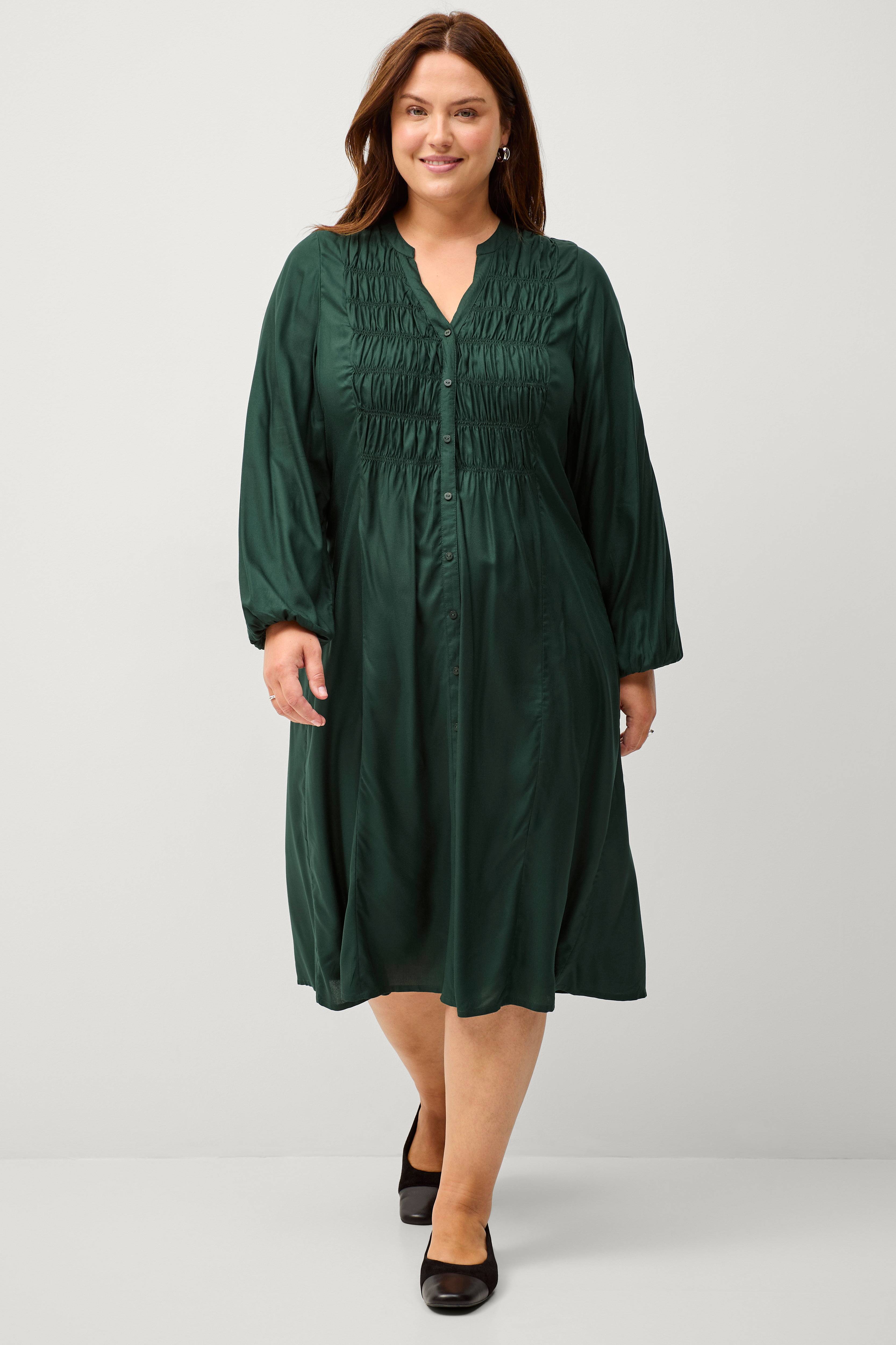 • Smok oben an der Vorderseite und am Rücken• V-Ausschnitt• Knöpfe vorne• Lange Ballonärmel mit elastischen Manschetten• Länge: 120 cm in Größe XL