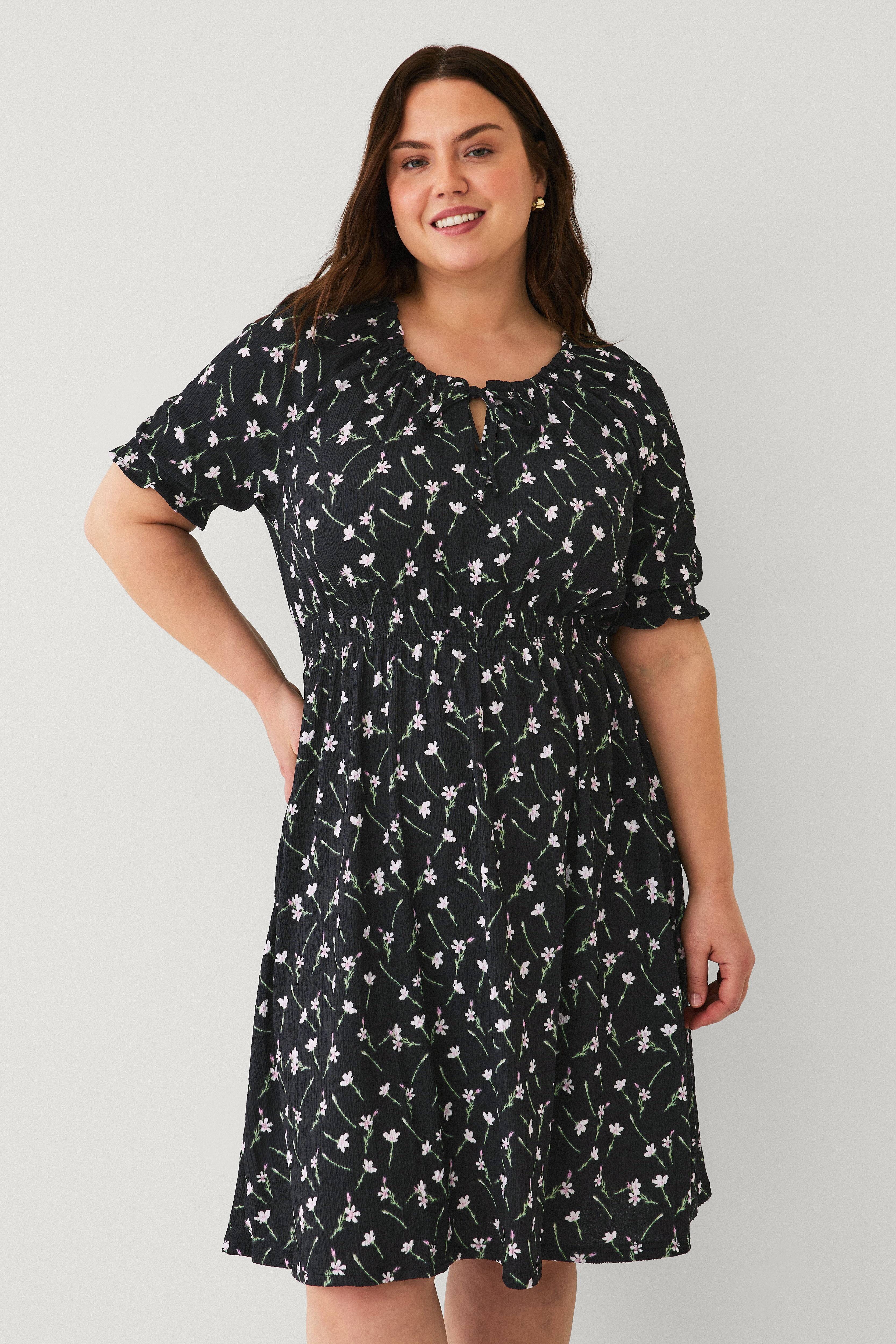 • Kleid aus dünnem, weichem Polyester-Mix mit Struktur