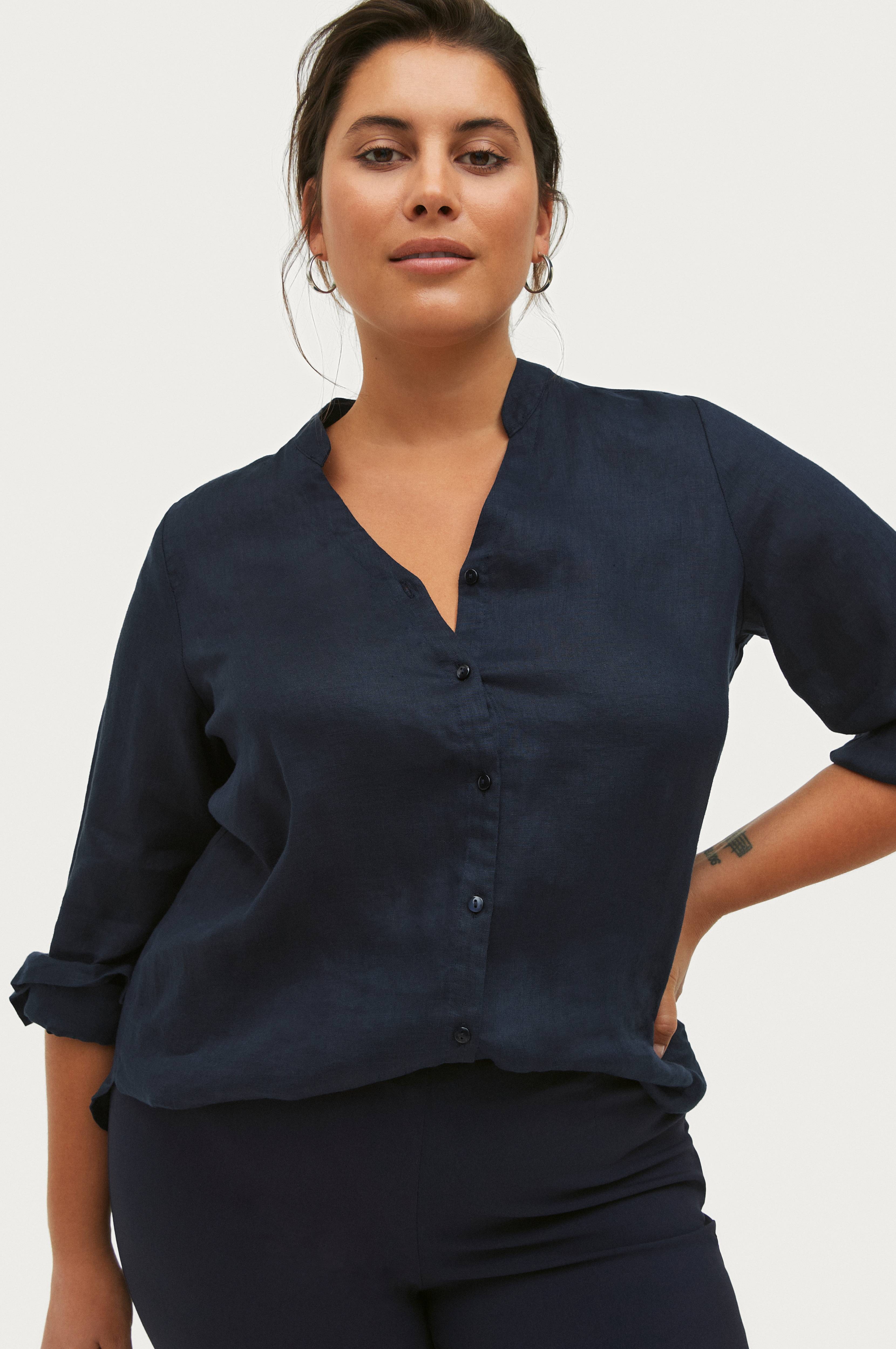 • V-förmiger Ausschnitt mit kleinem Stehkragen