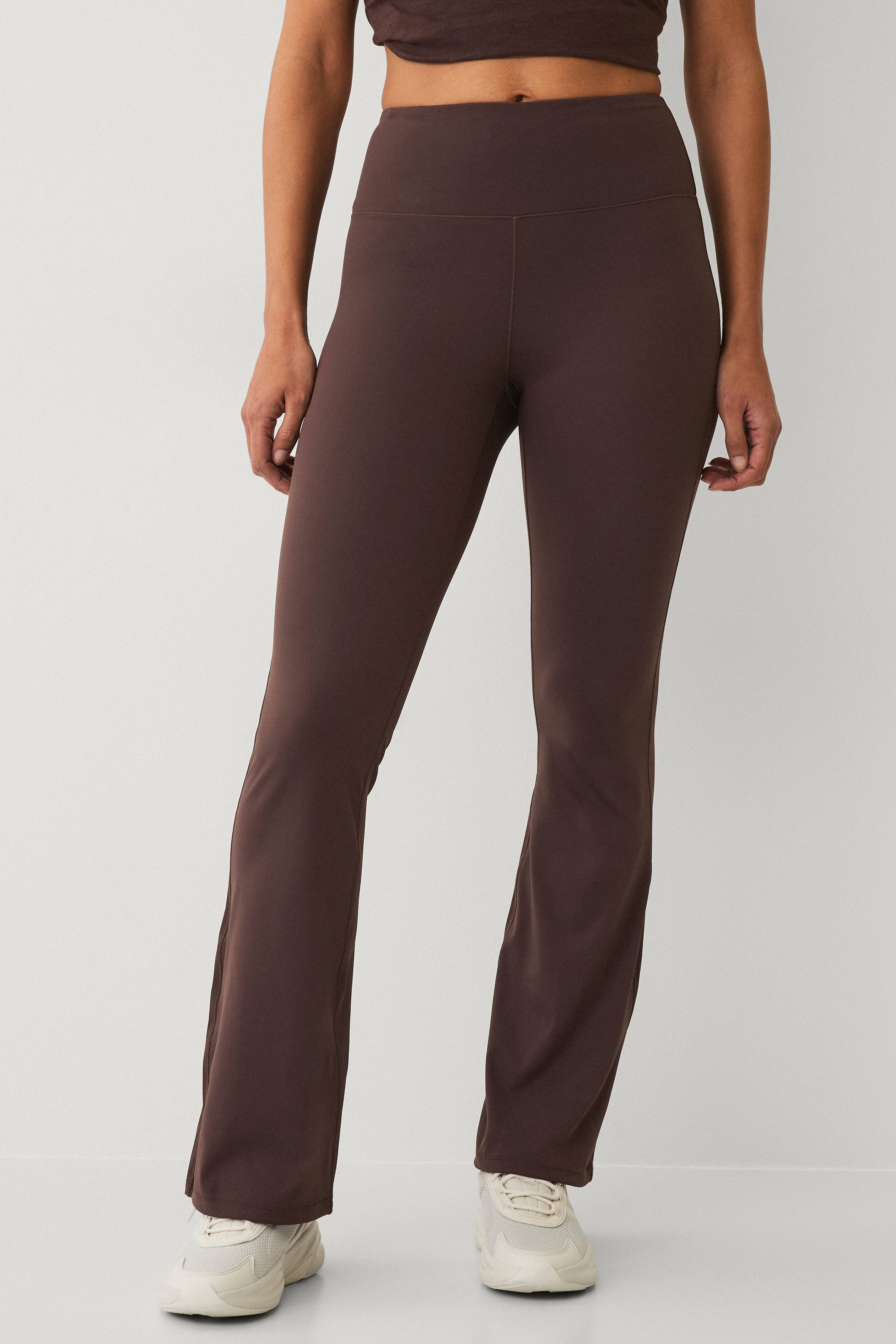 Gute Passform. Das Material dieser dunkelbraunen Leggings hält auf die richtige Weise. Schöne Beinpassform.