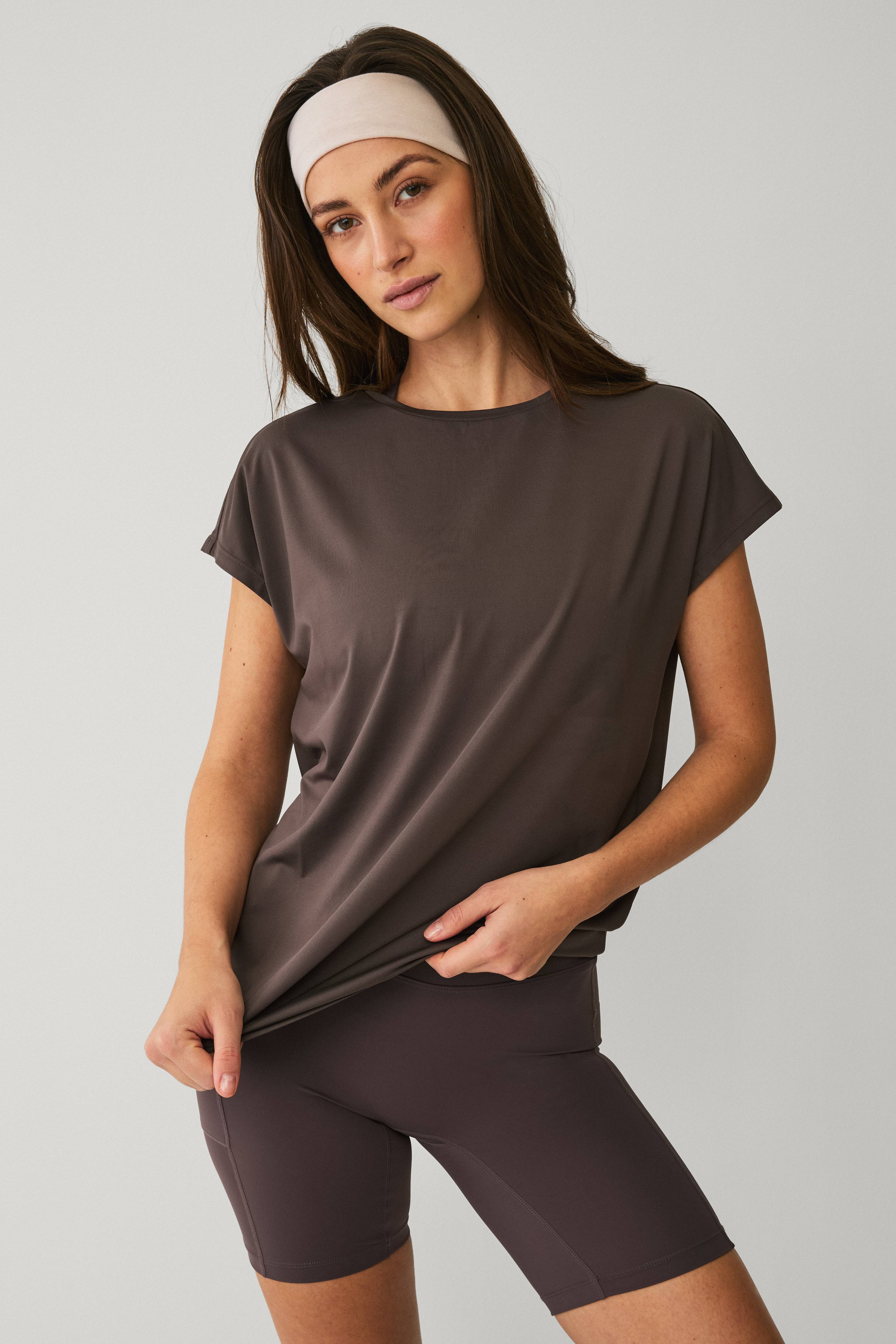 Ich mag es, ein Trainingsshirt zu haben, das vorne und hinten bedeckt, wenn man Tights trägt, und das tut dieses. Ansonsten angenehm zum Trainieren, kühl und locker sitzend. Ich habe eine Gr…